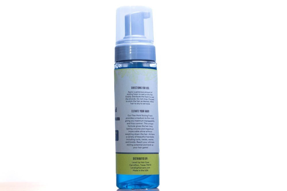 Our Flex Hold Styling Foam provides a medium to firm hold giving you maximum manageability and frizz control. This unique formula gives the hair long lasting volume and imparts an impeccable shine without weighing down the hair. Achieve a variety of beautiful hairstyles including curls, twists, waves, and braids. Reach your ultimate styling potential and level up your hair game!
